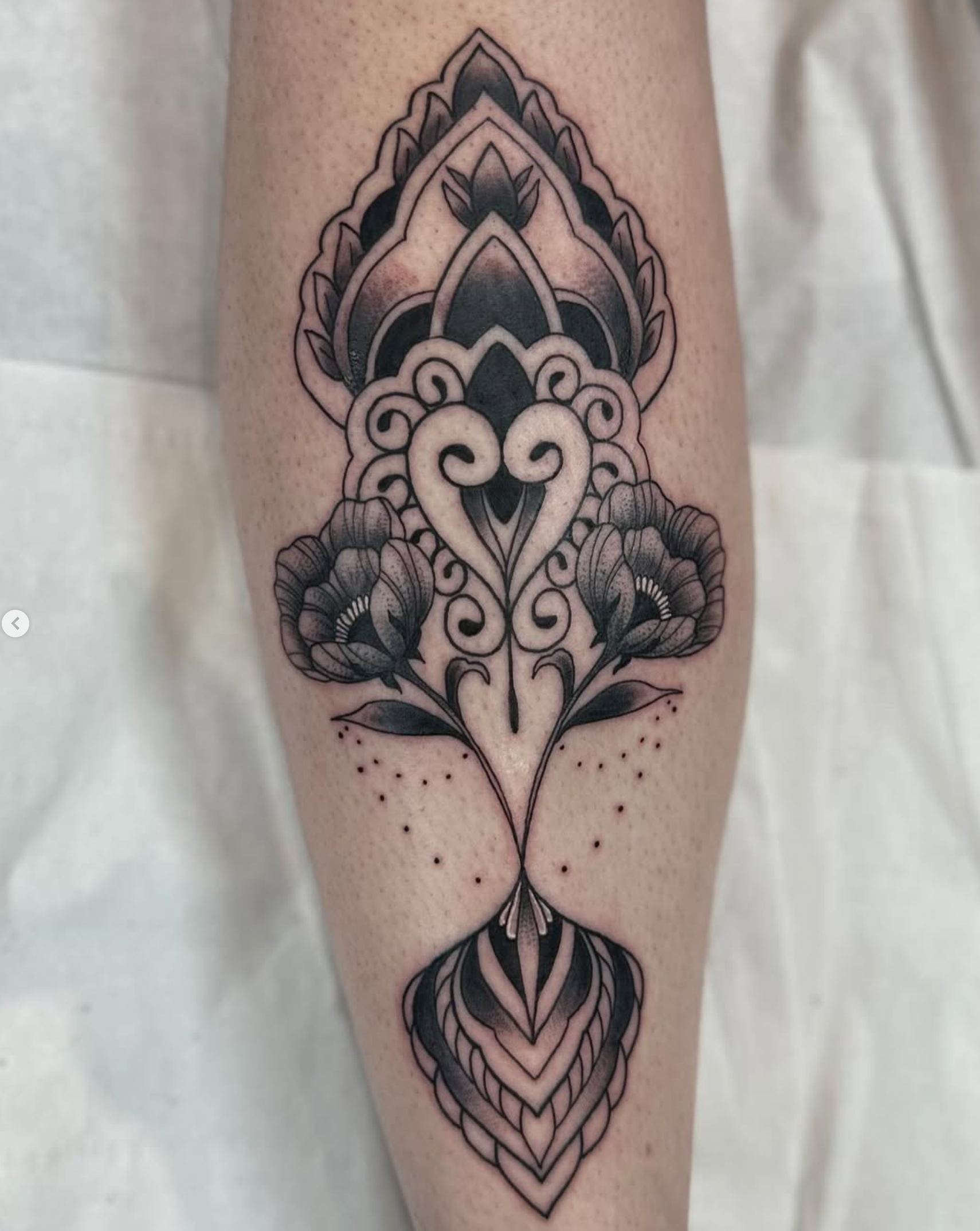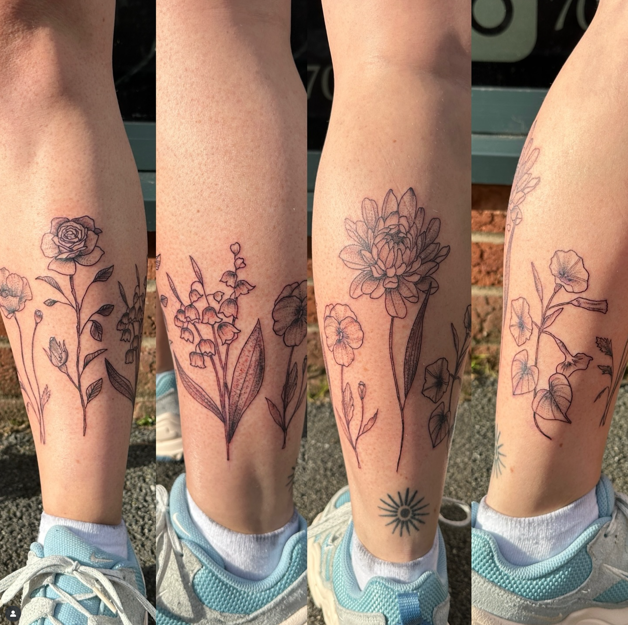 Bee loves to focus on floral and blackwork designs, she also enjoys larger pieces involving dotwork.